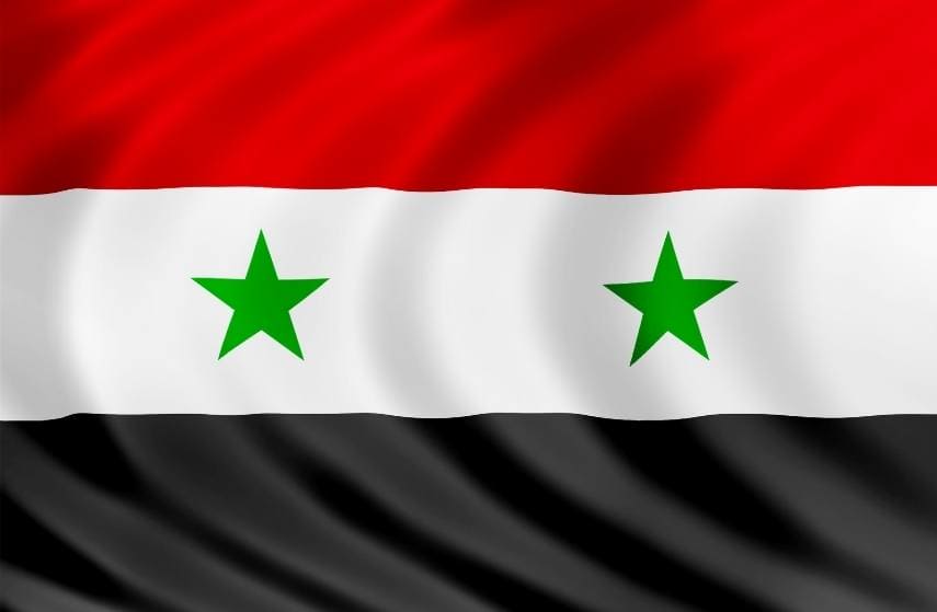 La bandiera della Siria è stata adottata il 30 marzo 1980. È stata anche la bandiera dell'ex Repubblica Araba Unita.I colori della bandiera sono quelli tradizionali del panarabismo, riscontrabili anche sulle bandiere di Yemen, Egitto e Iraq. Le due stelle rappresentano Egitto e Siria, le due nazioni che partecipavano alla Repubblica Araba Unita. Composizione: 100% Poliestere