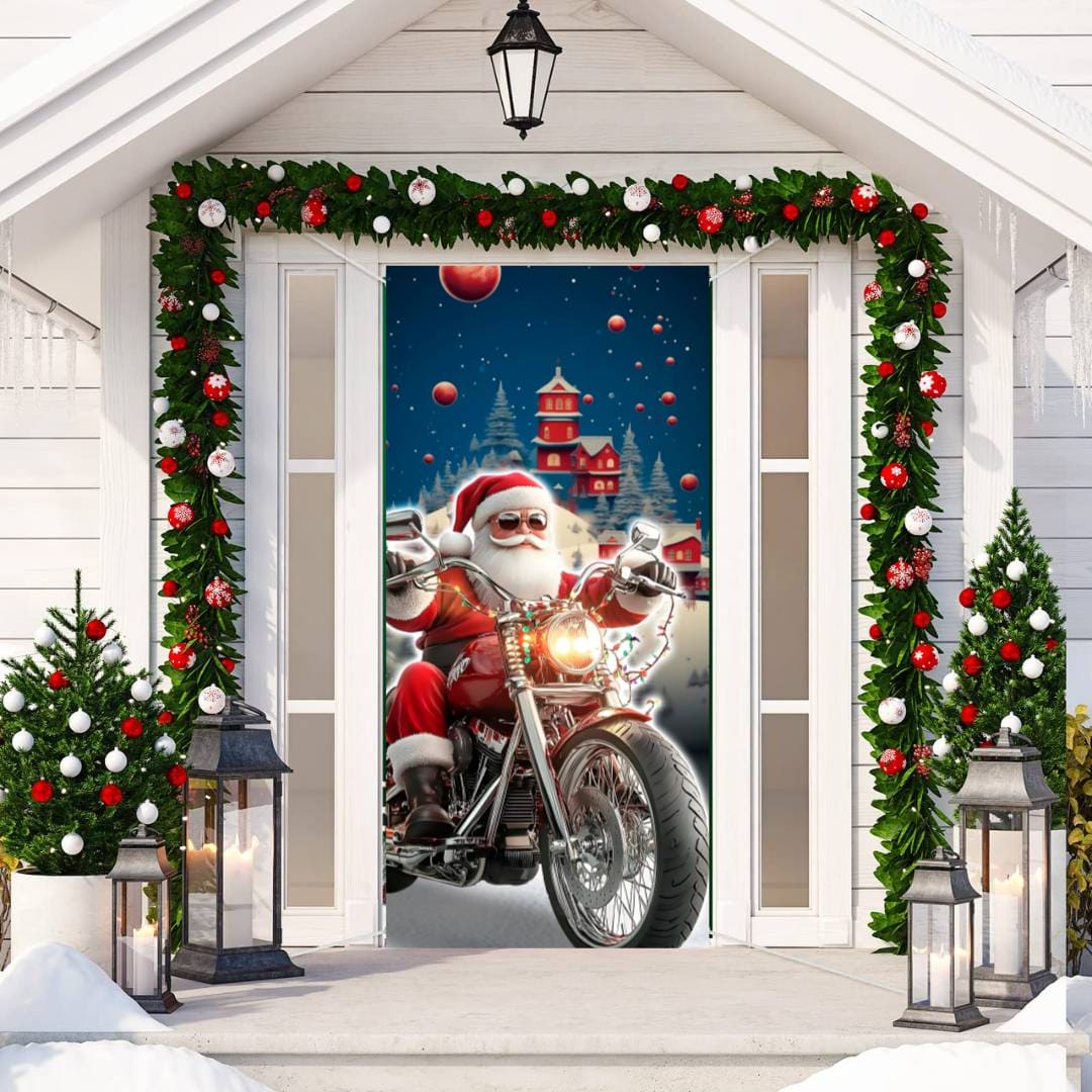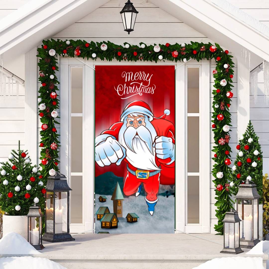 Rendi unica la tua porta con il pannello copriporta Babbo Natale 90×220 cm e accogli i tuoi ospiti in un’atmosfera di festa e allegria! Questo colorato decoro natalizio trasforma l'ingresso di casa o negozio in un accogliente benvenuto grazie all’inconfondibile sorriso di Babbo Natale e a dettagli che richiamano la tradizione natalizia. Perfetto sia per ambienti interni che esterni, è ideale per decorare qualsiasi porta d’ingresso.