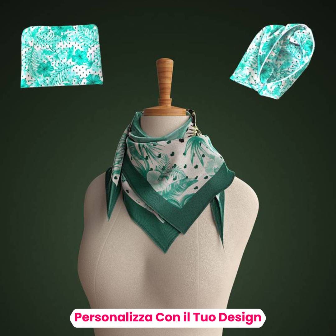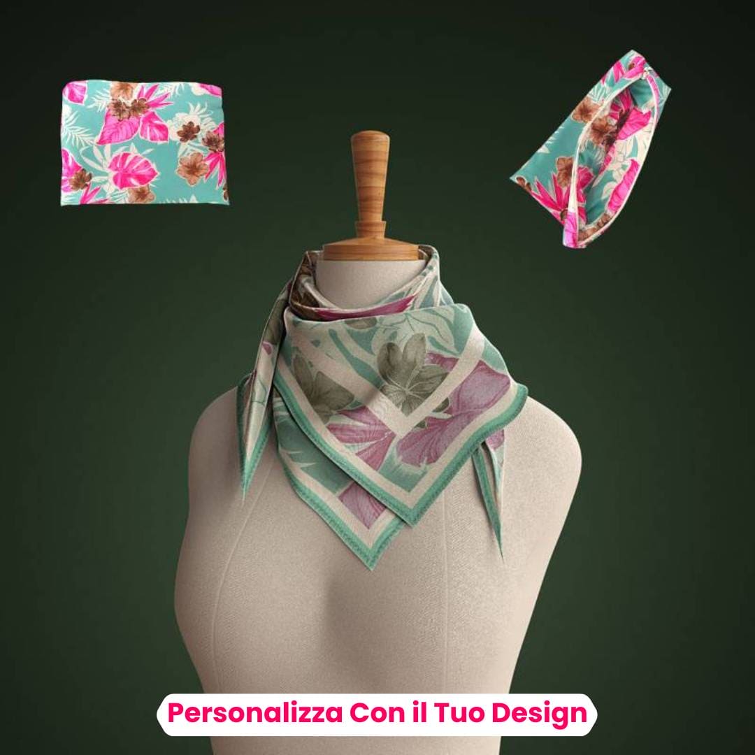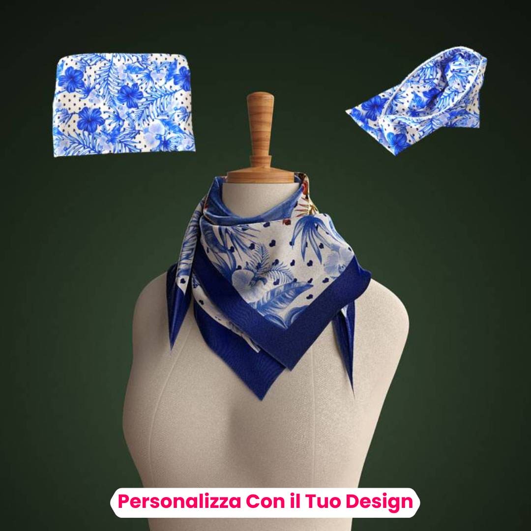 Caratterizzati da una lavorazione impeccabile e realizzati con materiali di alta qualità, i nostri foulard personalizzati catturano l'attenzione e fanno una dichiarazione di stile distintiva. Offriamo una vasta gamma di opzioni di personalizzazione, tra cui la stampa del tuo logo, il nome dell'azienda o uno slogan aziendale. I nostri esperti designer lavoreranno con te per creare un design che rispecchi perfettamente l'identità del tuo brand, garantendo che il foulard personalizzato si distingua e lasci un'impressione duratura sui tuoi clienti.