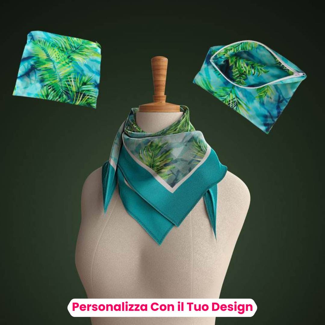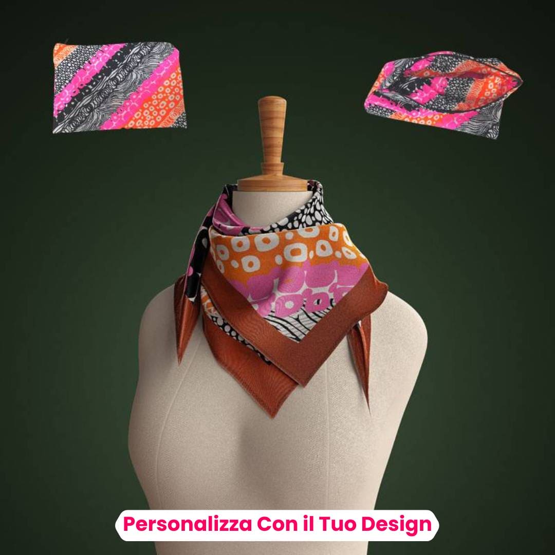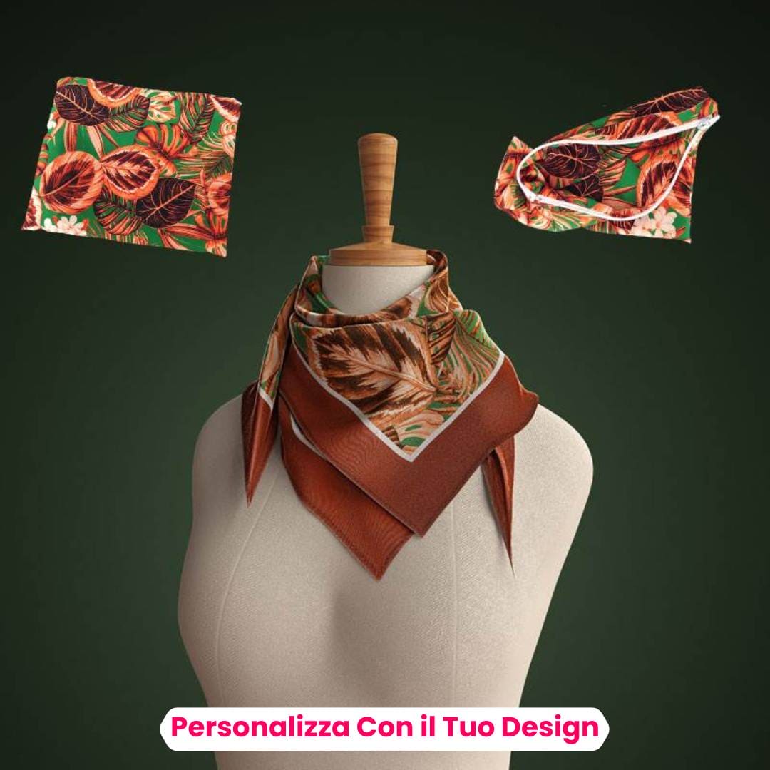Caratterizzati da una lavorazione impeccabile e realizzati con materiali di alta qualità, i nostri foulard personalizzati catturano l'attenzione e fanno una dichiarazione di stile distintiva. Offriamo una vasta gamma di opzioni di personalizzazione, tra cui la stampa del tuo logo, il nome dell'azienda o uno slogan aziendale. I nostri esperti designer lavoreranno con te per creare un design che rispecchi perfettamente l'identità del tuo brand, garantendo che il foulard personalizzato si distingua e lasci un'impressione duratura sui tuoi clienti.