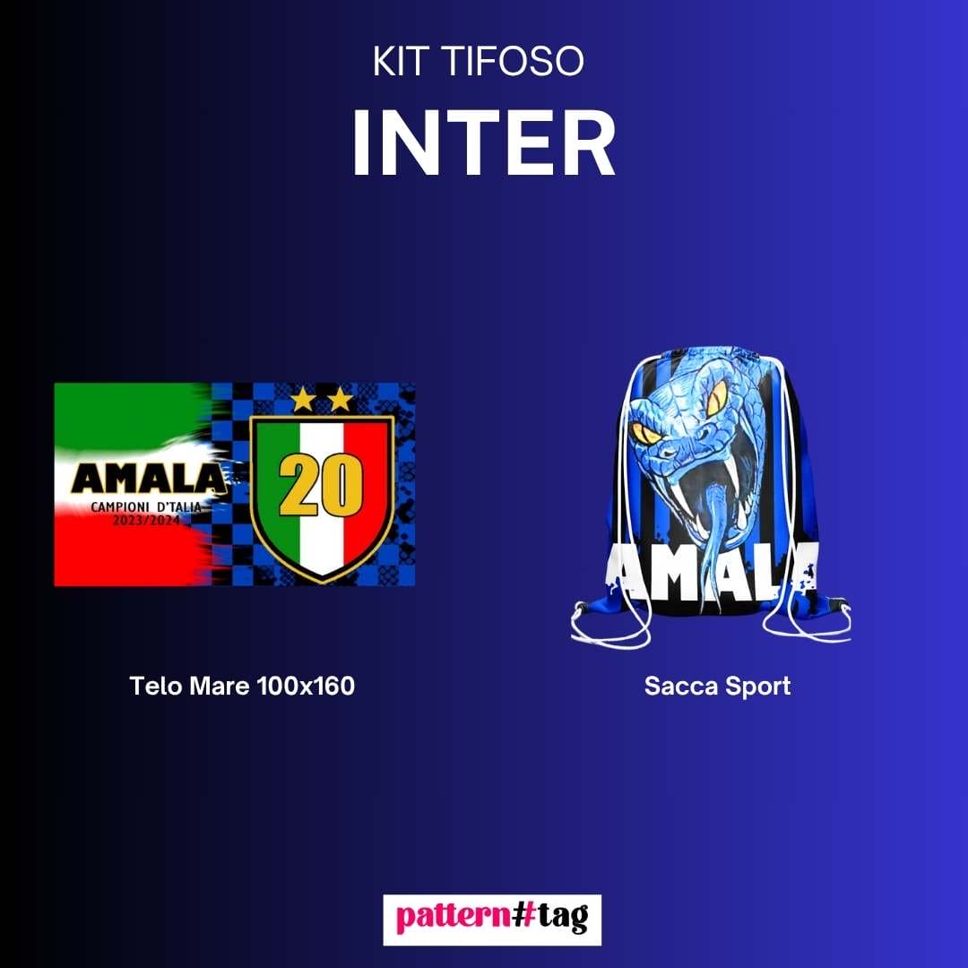 Festeggia lo Scudetto con il Kit Tifoso Inter, che include bandiera, sciarpa, portafortuna nerazzurro e telo mare. Un omaggio al 20º trionfo in campionato, pensato per ogni vero tifoso interista!
