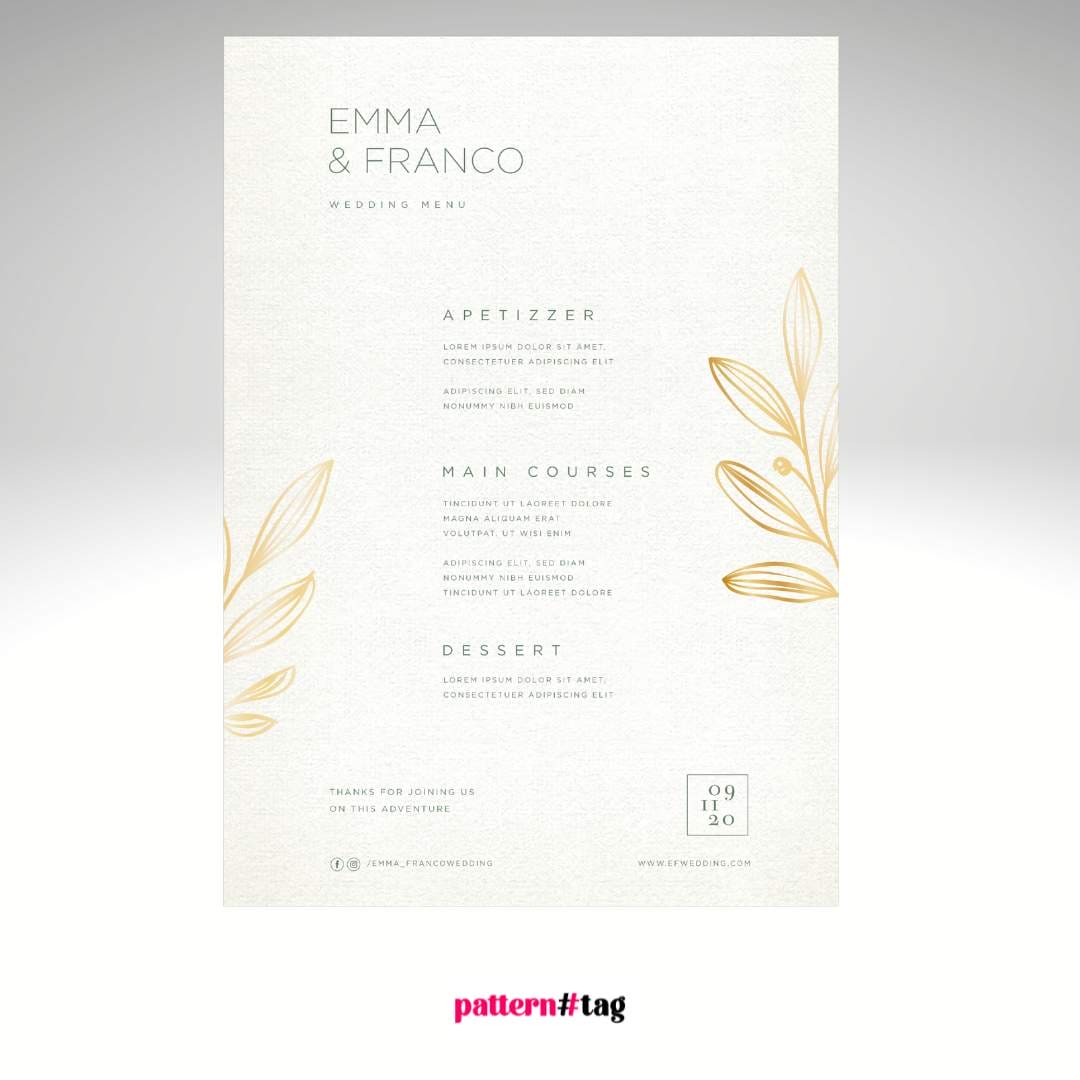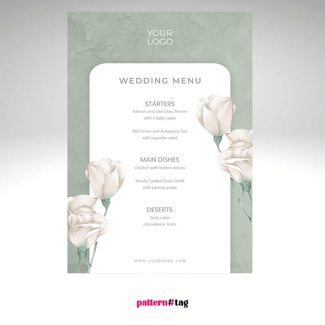 Design: Menù Elegante con Rose Bianche