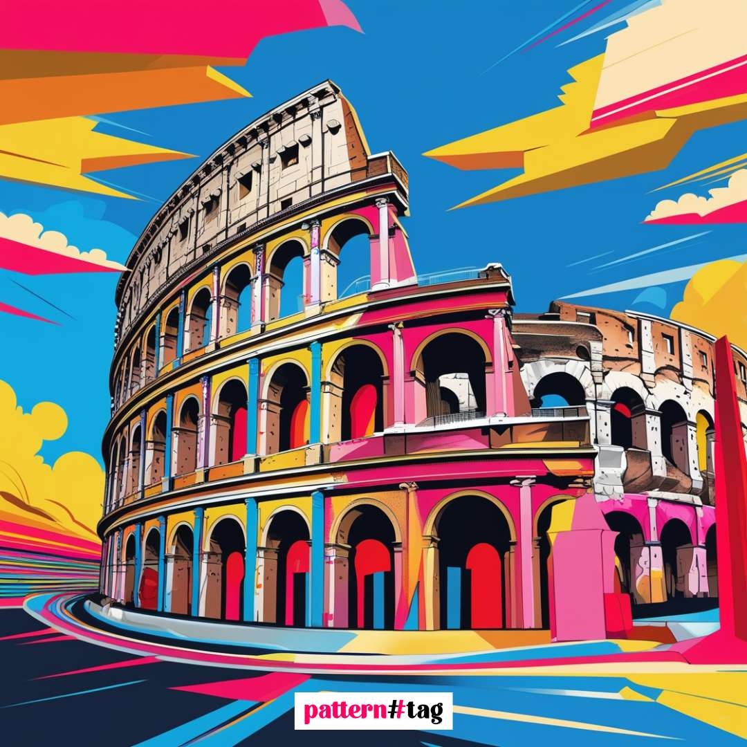 Il pannello in tessuto "Città di Roma con il Colosseo" celebra la grandezza dell'antica Roma, con un design che cattura l'essenza del Colosseo e l'imponenza della città.