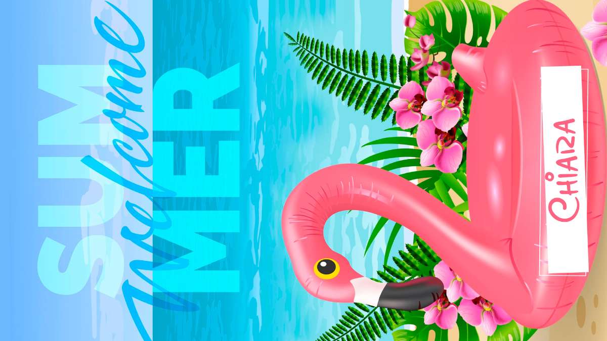 Telo Mare Bambini Estate, Fenicottero e Fiori Tropicali